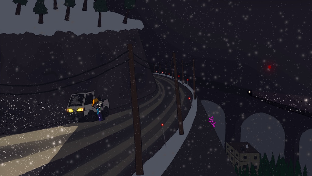 The soundtrack, brought to us by Sohaoying and pr0te, has much to do with my malaise. But it’s the setting, story, characters, and game-play loop of this gig-worker delivery simulator that has brought me to these weary and watery depths of introspection. And, I suppose, extrospection. The world in which we deliver our packages in Easy Delivery Co. is weighty and, perhaps, more than a little hostile. If you’ve never driven a mountain road in a blizzard in the middle of the night, you might just write this particular experience off as a semi-challenging in-game mechanic. For me, it transports my mind back to the many nights I drove home to the Colorado Front Range after a winter’s day in the mountains. The white-out conditions in Easy Delivery Co. transport me instantly and viscerally back to one particular late night drive over Wolf Creek Pass in a blizzard. Low on gas, visibility at all of ten feet, I did – eventually – make it, though I still have nightmares about that particular night. Easy Delivery Co. gifts players that exacting and particular brand of unease.