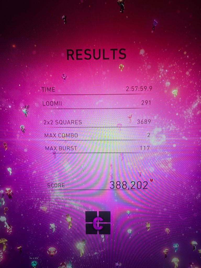 My session – which ended two hours and fifty seven minutes later with me in tears – began peacefully enough. The opening tracks are absolute bops and I easily relaxed into the comfort of having time to suss out where I wanted my blocks to fit, drop, and stack. Soon enough, my brain became more and more accustomed to the mechanics of the sliding and falling pieces. I got quicker and quicker at deciding where to drop and by the time my stage level was in the double digits I had entered a flow state I’ve never experienced to any great extent in gaming. I’ve heard it described an infinite number of times throughout my time in the gaming scene. You hear about it from pro Tetris players who say their brain just turns off everything else besides what needs to be done so that placing the tetronimoes becomes automatic and even subconscious. You hear about it from fighting game players. Some claim that it often feels like they can read their opponent’s next action even before said opponent knows what they themself are going to do. They’re so locked in, it’s as if they can read the future. I hadn’t realized it was happening while it was happening, but out of nowhere I just began making great plays, one after another. I was consistently scoring Burst Levels in the mid 100s, which, for me was ungodly high. My mind was a blank and smooth canvas stretched perfectly over the framing of Lumines. The minute I came to and consciously realized what was happening, it immediately fell apart. That’s when my brain sabotaged me.